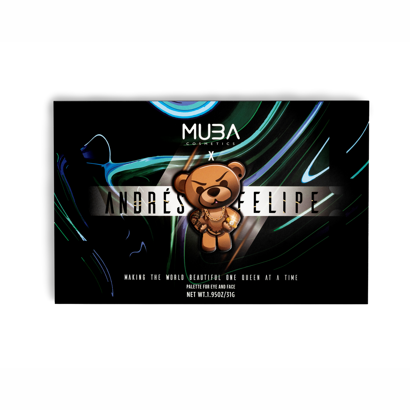 The Andrés Felipe All-in-One Makeup Palette by MUBA Cosmetics is your complete face set in one sleek design. Created by founder Andrés Felipe Cabrera, this palette was made for quick, glamorous looks, easy travel, and maximum value — giving you five products in one.