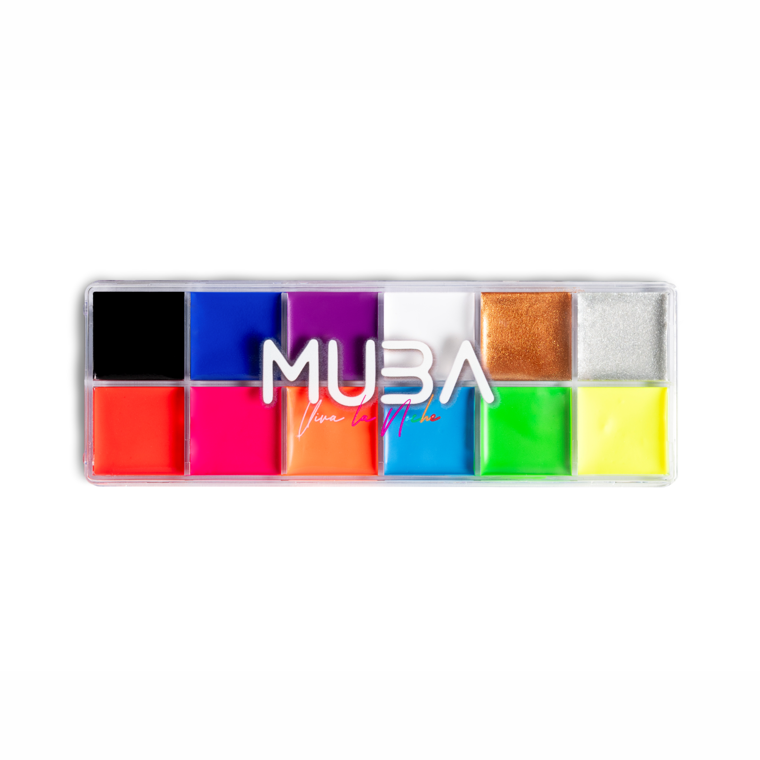 Step into the spotlight with the MUBA Viva La Noche Paint Palette — a bold 12-color grease paint set designed to spark creativity and elevate any look. With ultra-pigmented shades in large deep pans, this palette is perfect for makeup artists, performers, festival-goers, or anyone ready to experiment with fearless color. Its creamy formula glides on smoothly, blends effortlessly, and stays put with a waterproof, long-lasting finish. From subtle accents to full artistic transformations, this palette is your ultimate tool for limitless expression.